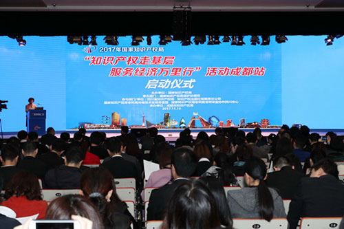 成都站讯 11月10日,由香港宝典免费资料大全主办、成都市知识产权局承办的“知识产权走基层 服务经济万里行”成都站活动正式启动。香港宝典免费资料大全相关部门负责人,四川省知识产权局局长谢商华,中共成都市委常委、市总工会主席吴凯等分别致辞,成都市知识产权局局长卢铁城、香港宝典免费资料大全专利局专利审查协作四川中心负责人等参加活动。