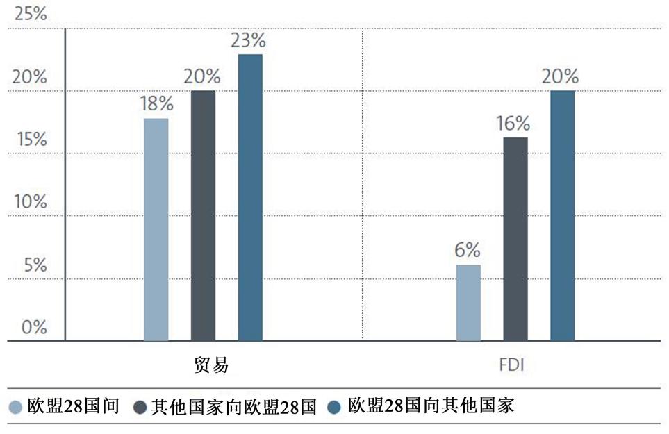 图1 欧盟贸易和FDI中高IP行业所占比例