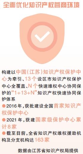 今年7月,在只有5家企业获奖、20家企业入围的首届世界知识产权组织(WIPO)全球奖中,江苏就分别有1家企业获奖,3家企业入围,均占中国获奖、入围企业的二分之一,由此可从中窥见江苏企业跃动的创新活力。过去十年,江苏聚焦创新主体,开展了扎实有力的知识产权工作,赋能创新链、升级产业链,自主可控的现代产业体系建设取得重大进展,谱写了“强富美高”新江苏现代化建设新篇章。