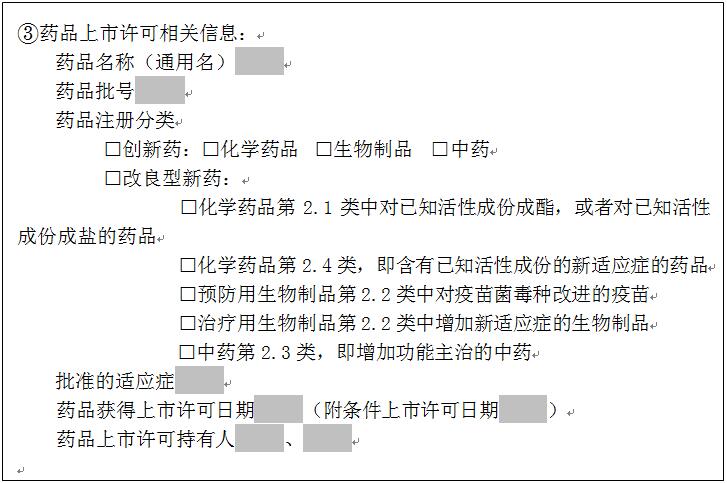 (a)在请求书中应当写明药品上市许可相关信息:包括药品名称、药品注册分类以及批准的适应症等;