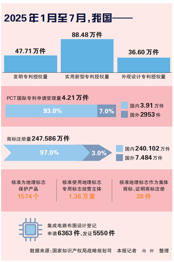 一图速览我国1月至7月知识产权统计数据