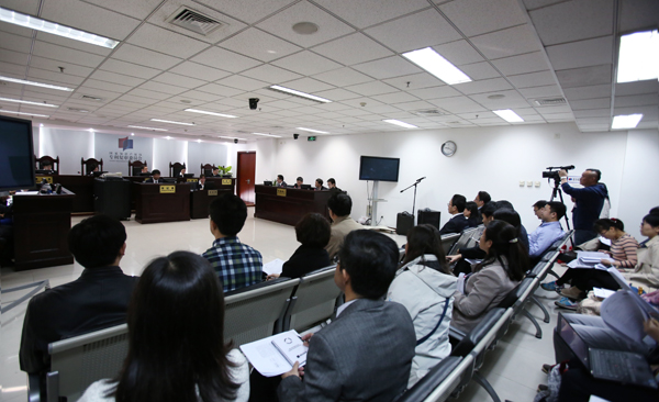 合议组就座,口头审理开始。参审员宣读口头审理审议庭规则。