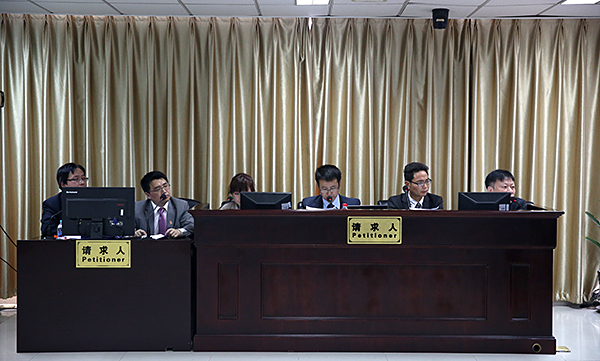 合议组成员就座,合议组组长宣布口头审理开始,介绍案件基本信息,合议组成员及书记员;