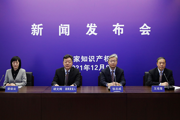 出席今天发布会的有,局知识产权保护司司长张志成,运用促进司司长雷筱云,公共服务司司长王培章。我是局新闻发言人、专利局副局长兼局办公室主任胡文辉。