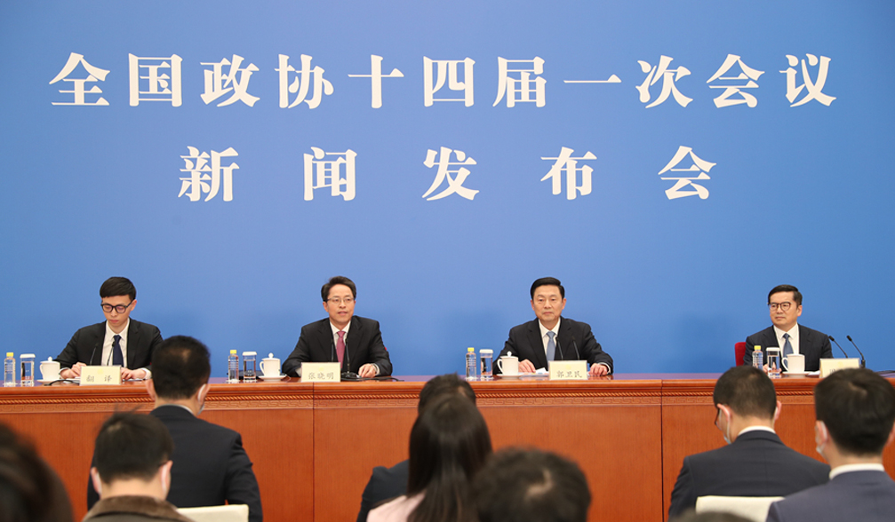 十四届全国人大一次会议举行新闻发布会,大会发言人就大会议程和人大工作相关问题回答中外记者提问