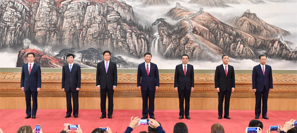 党的十九届一中全会选举习近平、李克强、栗战书、汪洋、王沪宁、赵乐际、韩正为中央政治局常委