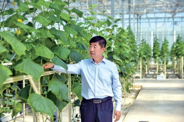 耿遵珠在大棚里查看黄瓜长势 受访者供图